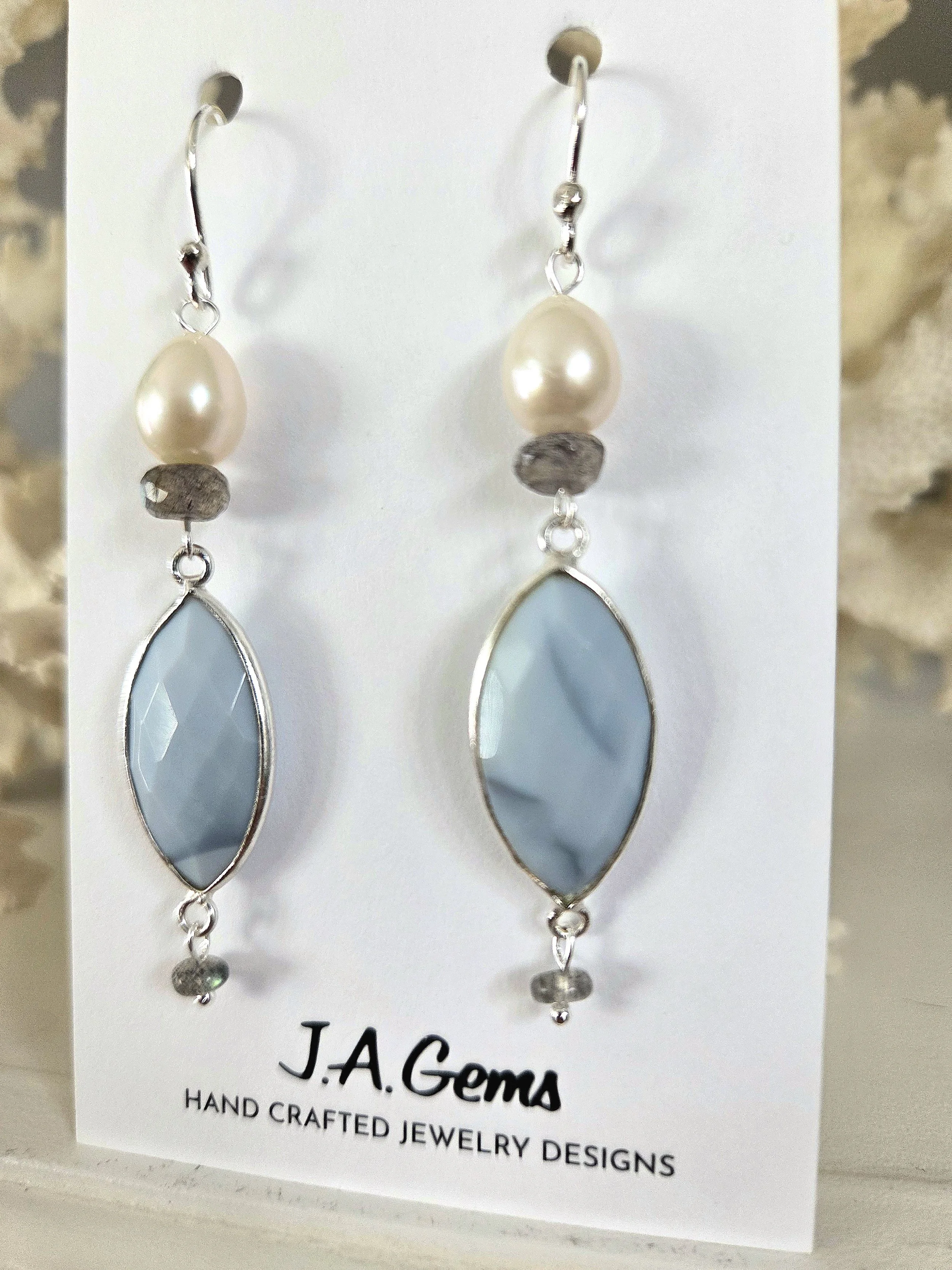 Custom Designs Categories: All All Bracelets All Earrings All Necklaces Shop All | All Bracelets | All Earrings | All Necklaces | Quick View Hexagon Blue Fire Labradorite and Pearl accented with Gold-filled oval, chain and clasp $72.00 Quick View Large Blue Chalcedony encased with Sterling Silver with Sterling clasp and Silver-plated chain $74.00 Quick View Large Labradorite stone encased in Sterling accented with Sterling chain and clasp $98.00 Quick View Greenish Aqua Blue Amazonite stone and 10mm Pearl featured with a Gold-filled chain and clasp $82.00 Quick View Blue Fire Labradorite accented with Silver-plated circle and Sterling chain and clasp $74.00 Quick View Beautiful Apetite Blue stone with Sterling chain, clasp and dangles $72.00 Quick View Labradorite /silver chain with 10mm Pearl and Agate and Sterling Silver clasp $69.00 Quick View Rainbow Moonstone accented with gold-filled chain and clasp $69.00 Quick View Hexagon Labradorite accented with Gold-filled oval, chain, clasp $72.00 Quick View Large Blue Fire Labradorite with Rainbow Moonstone drop and Moonstone/Silver chain $74.00 Quick View Large Blue Fire Labradorite with Gold-filled Chain and Clasp $74.00 Quick View Small Pearl Chain with Sterling Clasp and Blue Fire Labradorite $74.00 Quick View Blue Opal, Moonstone, Pearl on Sterling Silver Chain and Sterling Clasp $74.00 Quick View Pearl Chain with Blue Fire Labradorite and Sterling Silver Clasp $74.00 Quick View Blue Fire Labradorite combined with a beautiful Moonstone Chain and Sterling Clasp $72.00 Quick View Hexagon Moonstone with Blue Fire Labradorite and Sterling Ear Wires $72.00 Quick View Blue Opals and Blue Fire Labradorite with Sterling Ear Wires $74.00 Quick View Beautiful Blue Fire Labradorite and Lustrous Pearls and Sterling Ear Wires $74.00 Quick View Beautiful Rainbow Moonstone with Silver-plated dangles and Sterling Ear Wires $69.00 Quick View Blue Opals with Labradorite and Lustrous Pearls with Sterling Ear Wires $72.00 Quick View Blue Fire Labradorite and Rainbow Moonstone with Sterling Ear Wires $76.00 Quick View Apetite Blue stones with Moonstone and Labradorite and Sterling Ear Wires $76.00 Quick View Beautiful Blue Fire Labradorite stones with Rainbow Moonstone and Sterling Ear Wires $76.00 Quick View Blue Chalcedony and Moonstone with Silver-plated flower and Sterling Silver Ear Wires $72.00 Quick View Hexagon Labradorite and Rainbow Moonstone with Sterling Silver Ear Wires $76.00 Quick View Blue Fire/ Rainbow Labradorite Labradorite with Moonstone Sterling Ear Wires $76.00 Quick View Blue Fire Labradorite teardrops on long silver ear wires $74.00 Quick View Hexagon Labradorite and Pearls with silver-plated dangles and Sterling silver ear wires $69.00 Quick View Large Labradorite stones and large hoops Sterling Ear Wires $74.00 Quick View 12mm Pearls with Sterling Silver Ear Wires and Silver-plated dangles $69.00 Quick View Black Onyx Marquises with Silver-plated ovals and Sterling Silver Ear Wires $69.00 Quick View Black Onyx Marquise with Silver-plated Flowers and Sterling Ear Wires $69.00 Quick View Lapis and Sterling Silver Ear Wires and Silver-plated flowers $69.00 Quick View Blue Opals, 10mm Pearls and Labradorite with Sterling Silver Ear Wires $72.00 Quick View 12mm Pearls on large silver-plated hoops and Sterling Silver Ear Wires $72.00 Quick View Labradorite, Pearls on silver-plated with Sterling Silver Ear Wires $72.00 Quick View Apetite stones with Labradorite and Pearls and Sterling Silver Ear Wires $72.00 Quick View Beautiful Labradorite with Silver-plated dangles and Sterling Silver Ear Wires $72.00 Quick View Lapis and Moonstone with Large Silver-plated hoops and Sterling Silver Ear Wires $72.00 Quick View Beautiful Labradorite stones and lustrous Pearls with gold-filled ear wires $74.00 Quick View Hexagon Blue Fire Labradorite and Pearls silver-plated dangles $72.00 Quick View Lapis stones and Moonstone silver plated circles Sterling ear wires $72.00 Quick View Blue Chalcedony silver-plated circles $68.00 Quick View Square Labradorite with Pearls and silver-plated dangles. $69.00 Quick View Large Teardrop Blue Fire Labradorite with silver-plated oval hoops-Sterling Ear Wires $72.00 Quick View 10mm Pearls with Blue Fire Labradorite gold-filled ear wires $72.00 Quick View 10mm Pearls with Blue Fire Labradorite Gold-filled ear wires $69.00 Quick View 10mm Lustrous Pearls with gold-plated ovals $69.00 Quick View Rainbow Moonstone, gold-filled hoops and ear wires $72.00 Quick View Blue Fire Labradorite stones with Pearls and gold-filled ear wires $72.00 Quick View Ruby Flowers and Pearls with gold-filled posts $72.00 Quick View Amazonite, Rubies, gold-filled ear wires $74.00 Quick View Blue Fire Labradorite stones with long gold-filled ear wire $69.00 Quick View Ruby Flowers on long gold-filled ear wire $72.00 Quick View Labradorite, Rubies, Pink Chalcedony and 10mm Pearls $74.00 Quick View Blue Chalcedony with Pearl on Gold-Filled chain $74.00 Quick View Triple 10 mm Pearls in the center of a beautiful Turquoise Necklace accented in Gold $76.00 Quick View Turquoise necklace with 3 10mm Pearls in the center accented with Sterling Silver Clasp $74.00 Quick View Beautiful Turquoise necklace with Mother of Pearl accented in Silver $74.00 Quick View Lustrous Pink Pearls with Silver Circles $72.00 Quick View Striped Opal on a Labradorite Chain with Sterling Silver Clasp $69.00 Quick View Circle Shell accented with Gold-filled dangles $69.00 Quick View Labradorite bracelet with Pearl drop $49.00 Quick View Turquoise double stand bracelet with silver accents $69.00 Quick View Iridescent Oyster Pearls $59.00 Quick View Blue Freshwater Pearls with Silver accents $74.00 Quick View Beautiful Blue Chalcedony with Large Gold Hoops $72.00 Quick View 12mm Lustrous Pearls with large Silver Hoops $72.00 Quick View Rainbow Moonstone, Turquoise, and Pearls with Silver $72.00 Quick View Beautiful 10mm Pearls hanging from Gold/Pearl chain $69.00 Quick View 